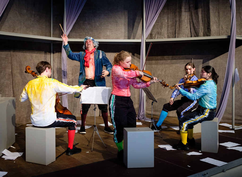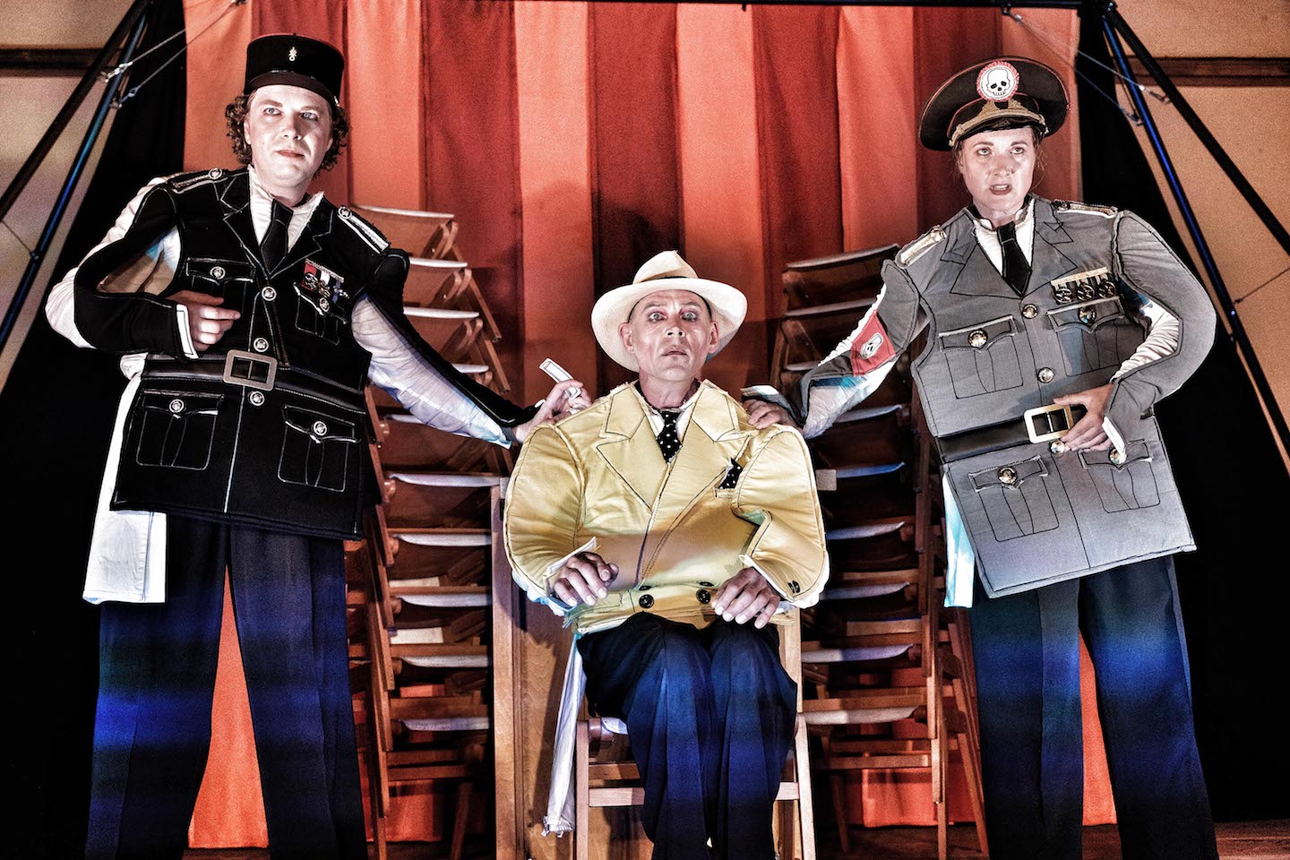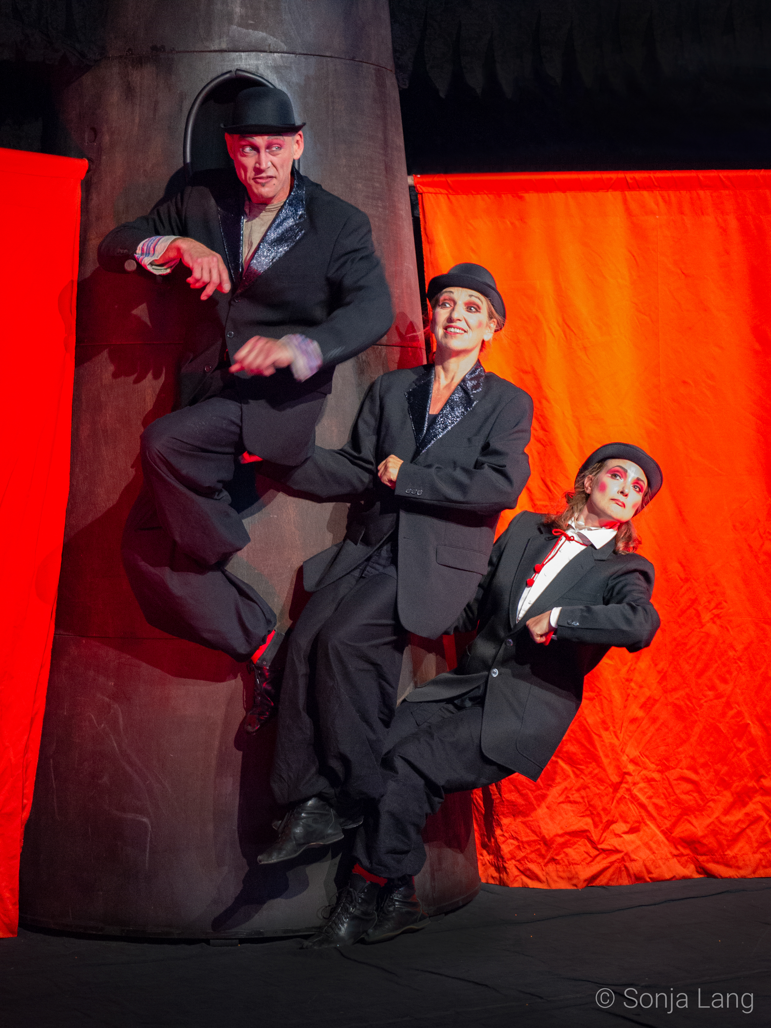Unsere Inszenierungen zeichnen sich durch eine einzigartige Mischung aus Live-Musik, Gesang, expressivem Schauspiel, rasantem Rollenwechsel und großer Spielfreude aus. Sowohl das Ensemble als auch die bespielbaren Bühnenbilder sind auf hohe Flexibilität ausgelegt. Unser Markenzeichen: aktuelle, gesellschaftlich relevante Themen in große theatrale Bilder übersetzen. Dabei setzen wir auf Verständlichkeit auch komplexer Themen.