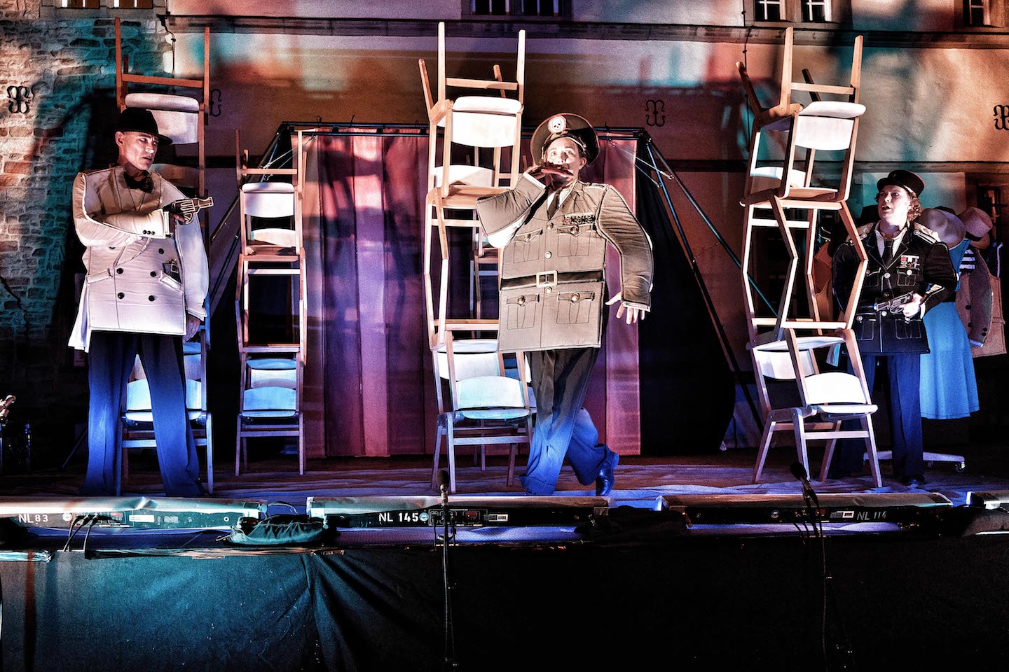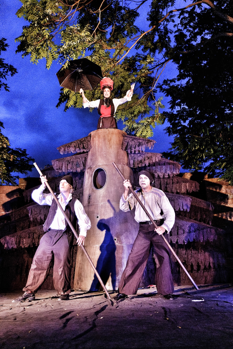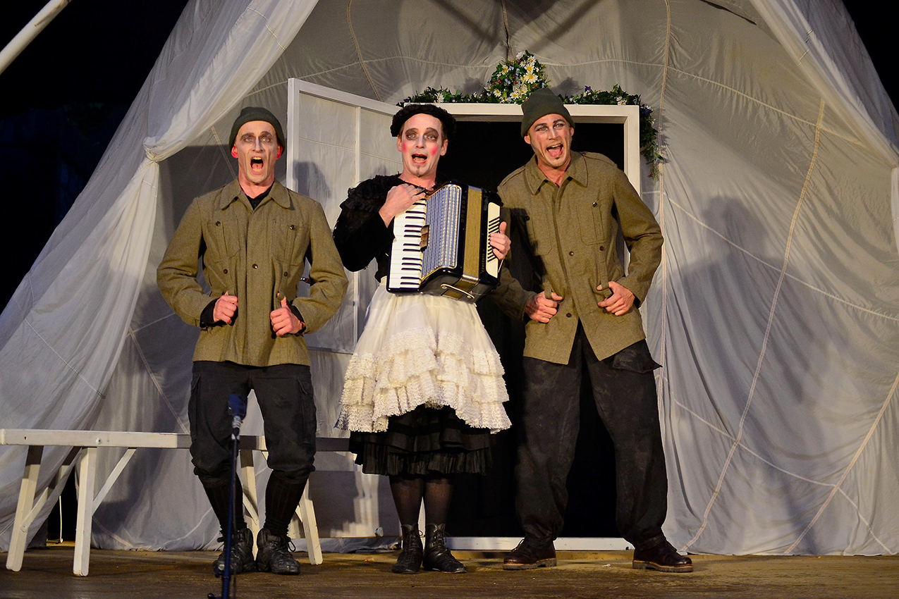 Unsere Inszenierungen zeichnen sich durch eine einzigartige Mischung aus Live-Musik, Gesang, expressivem Schauspiel, rasantem Rollenwechsel und großer Spielfreude aus. Sowohl das Ensemble als auch die bespielbaren Bühnenbilder sind auf hohe Flexibilität ausgelegt. Unser Markenzeichen: aktuelle, gesellschaftlich relevante Themen in große theatrale Bilder übersetzen. Dabei setzen wir auf Verständlichkeit auch komplexer Themen.